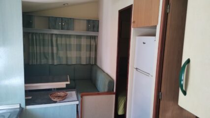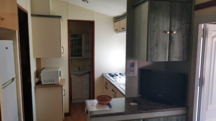 Disponibilidad de cunas, barandillas para los más pequeños. Baño con lavabo, ducha, WC, salón cocina (con todo el menaje necesario), microondas, nevera con congelador.